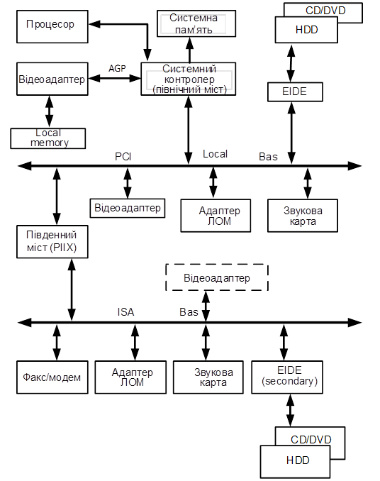 Рисунок 5 – Структура ПК з мостовою архітектурою chipset